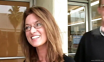 Not too bothered dark-haired Becky Bandini bends over letting boy fuck her