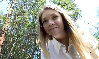 Bigtitted ash-blonde bae doggystyled outdoor